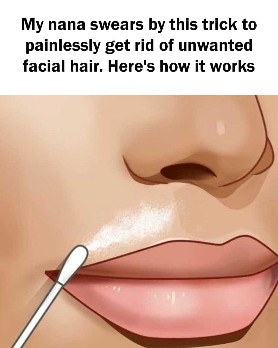 My nana swears by this trick to painlessly get rid of unwanted facial hair. Here’s how it works