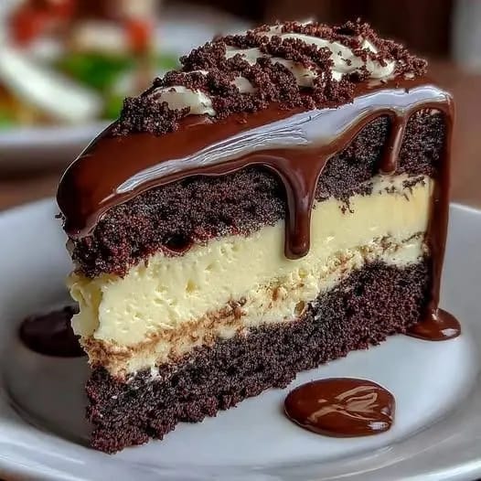 This dessert is pure indulgence: layers of moist chocolate cake sandwich a velvety cheesecake center, all cloaked in a glossy chocolate ganache. It’s rich, elegant, and perfectly balanced — the kind of showstopper dessert tinsuf was made to feature.