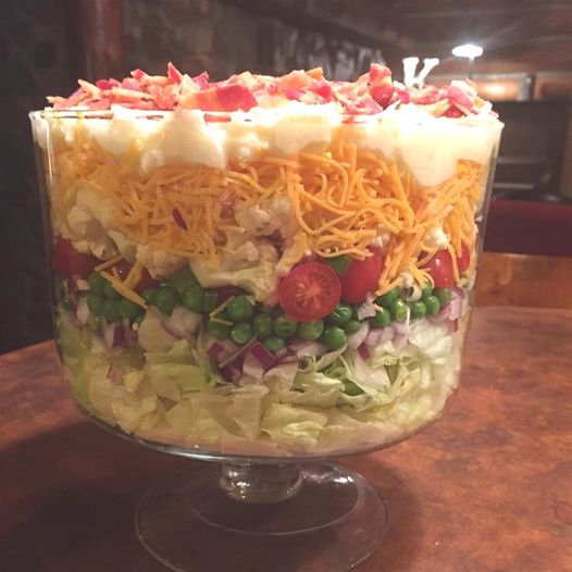 Seven Layer Salad is a delicious layered pea salad. This classic picnic recipe has been around for generations. It’s delicious, fresh and best of all cold—perfect for summer! This recipe is colorful, crunchy and creamy. It’s the perfect recipe for any warm weather gathering.