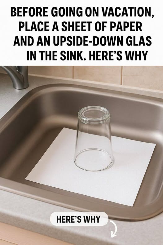Here’s why you should always leave an upturned glass and a piece of paper in the sink before going on vacation