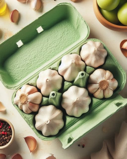 Storing garlic in an egg carton at room temperature is a simple yet effective method. The egg carton allows for proper air circulation, which is essential for keeping garlic fresh and preventing mold growth. By keeping the garlic in a cool, dry place, you can extend its shelf life significantly. Place a head of garlic in an egg carton and store it in a pantry or cupboard. Ensure the garlic is kept away from direct sunlight and moisture. This method helps the garlic stay fresh for up to several months, making it a convenient option for those who use garlic frequently in their cooking.