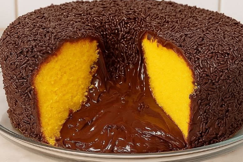 If you’re a true  chocolate lover, this Molten  Chocolate  Brigadeiro Cake is pure indulgence! With its soft and fluffy golden sponge cake coated in rich chocolate and Brazilian sprinkles, it hides a surprise inside—a gooey molten chocolate brigadeiro filling that flows out beautifully when you slice it. Perfect for birthdays, celebrations, or when you simply want a show-stopping dessert, this cake combines elegance with irresistible flavor.
