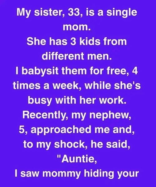 “Auntie, I saw Mommy hiding your…” before stopping abruptly, as if afraid to continue.