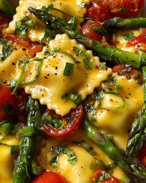 Ravioli with Tomatoes, Asparagus, Garlic, and Herbs 🍅🌿